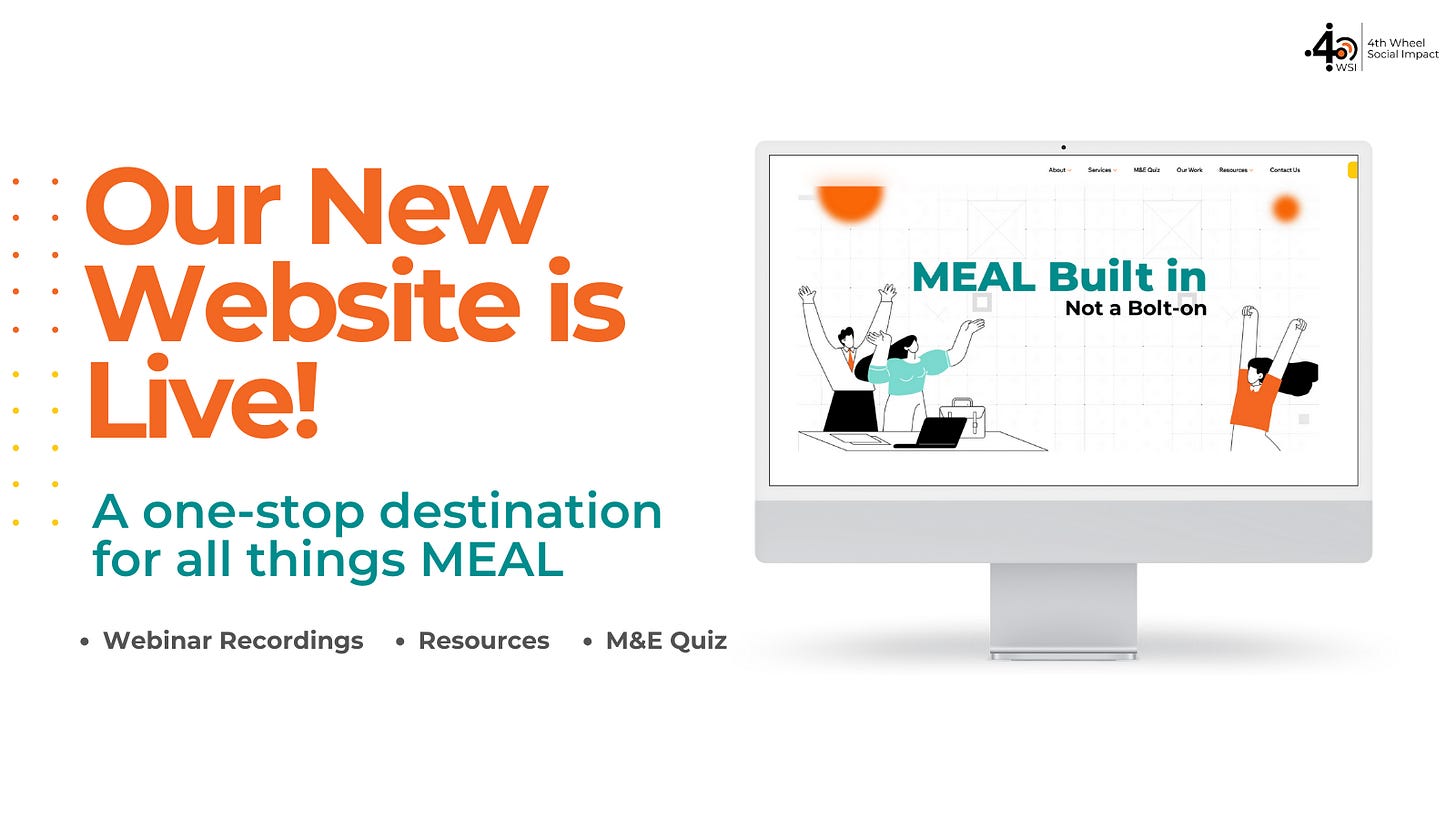 Our M&E Quiz is one of the standout features on the site. Itâs designed to help you stop, take stock, and reflect honestly on where your MEAL currently stands.